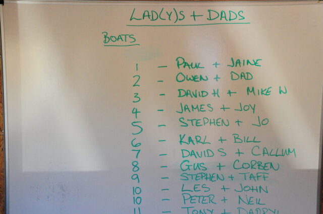 The event this year was won once again by the Dads team which now takes the score to Dads 7.5, Lad(y)s 4.5. Clearly the Lad(y)s team needs to pull their finger out next year to try to close the gap as the Dads are becoming way too confident and we need to see the Lad(y)s name on the “L” of a Length Trophy once more.
